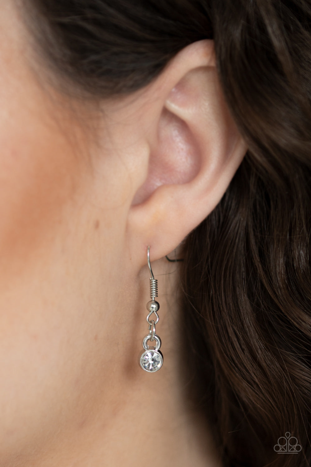 A white rhinestone encrusted heart intertwines with a plain silver heart inside of a larger silver heart frame, creating a romantic pendant at the bottom of a shimmery silver chain. Features an adjustable clasp closure.