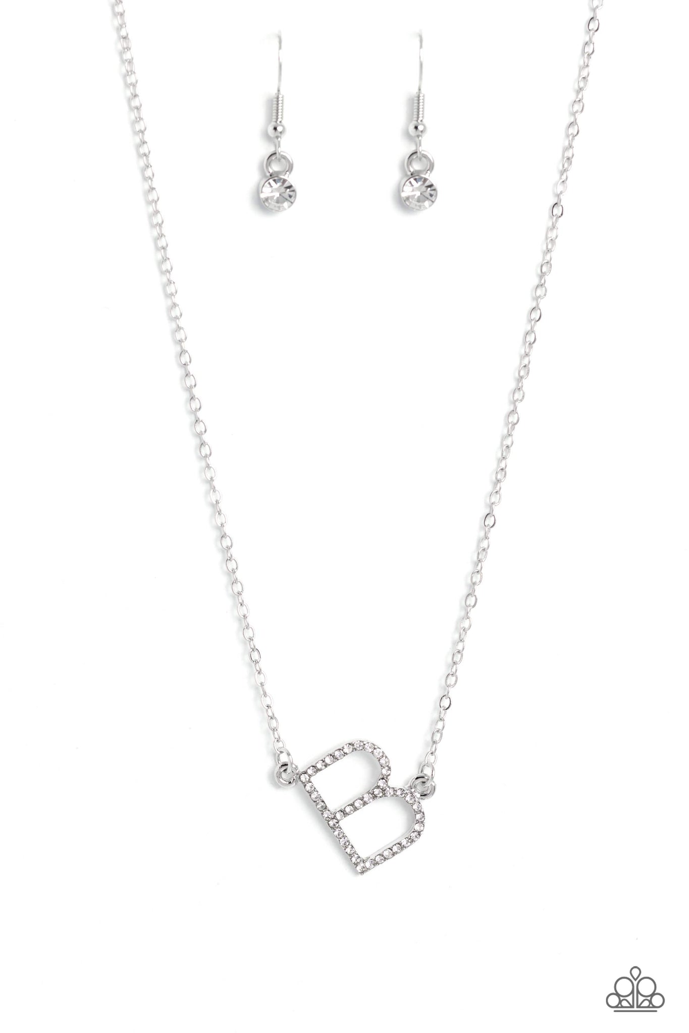 Embossed with dainty white rhinestones, a silver letter "B" hovers below the collar from a dainty silver chain, for a sentimentally simple design. Features an adjustable clasp closure.