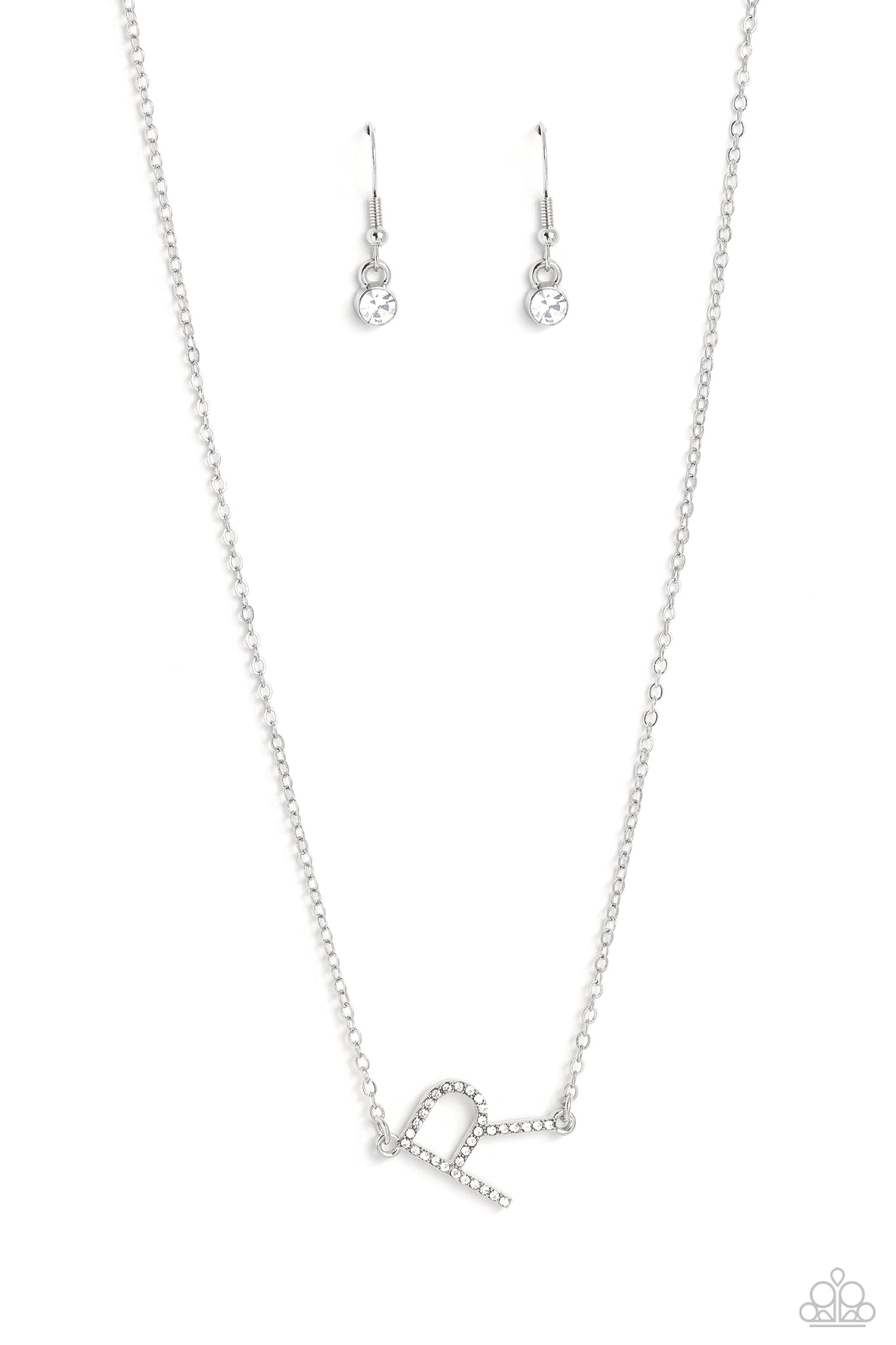 Embossed with dainty white rhinestones, a silver letter "R" hovers below the collar from a dainty silver chain, for a sentimentally simple design. Features an adjustable clasp closure.